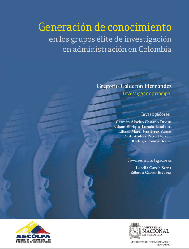 Hacer de los grupos elite de investigacion en administracion el objeto mismo de la presente investigacion fue w1 imeres que surgio a partir de la logica de Ia serie de investigaciones auspiciadas por Ia Asociacion Colombiana de Facultades de Administracion (Ascolfa), que datan de! 2005 a la fecha, y que han sido desarrolladas por redes de investigadores de las facultades de Administracion a nivel colombiano. Entre estas investigaciones se encuenmrn: La fundamentacion epistemologica de la disciplina administrativa desde la perspectiva de las ciencias sociales (Lozada, Durango, Arrubla, Ramirez,